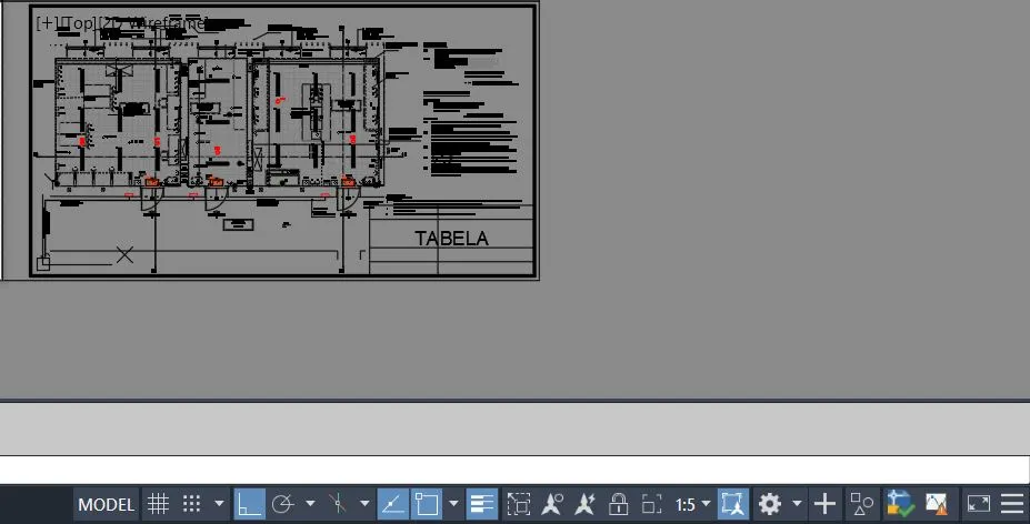 rysunek 2. aktywna przestrzeń modelu zaznaczonej rzutni. Na dole na pasku widoczne oznaczenie "MODEL"
