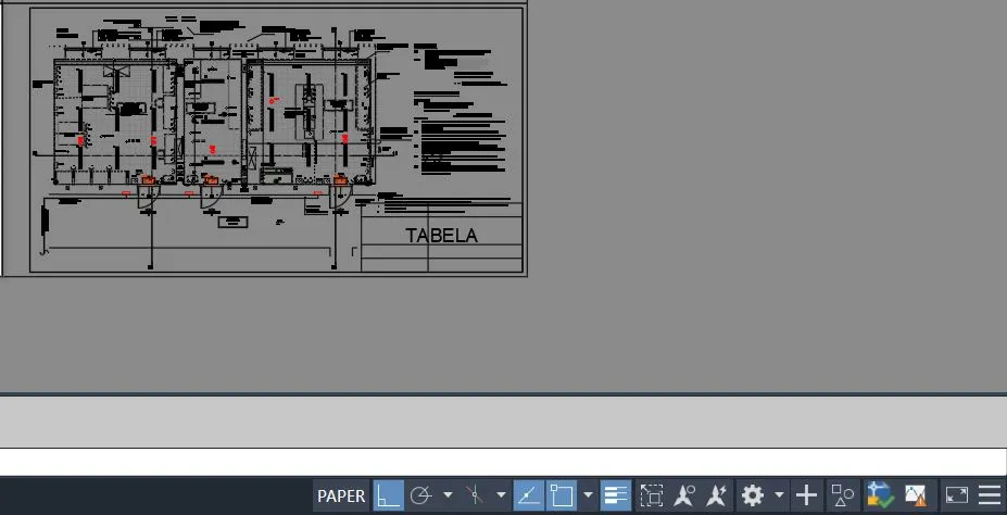 rysunek 3. aktywna przestrzeń rzutni layout (cienki obrys). Na dole na pasku widoczne oznaczenie "PAPER"