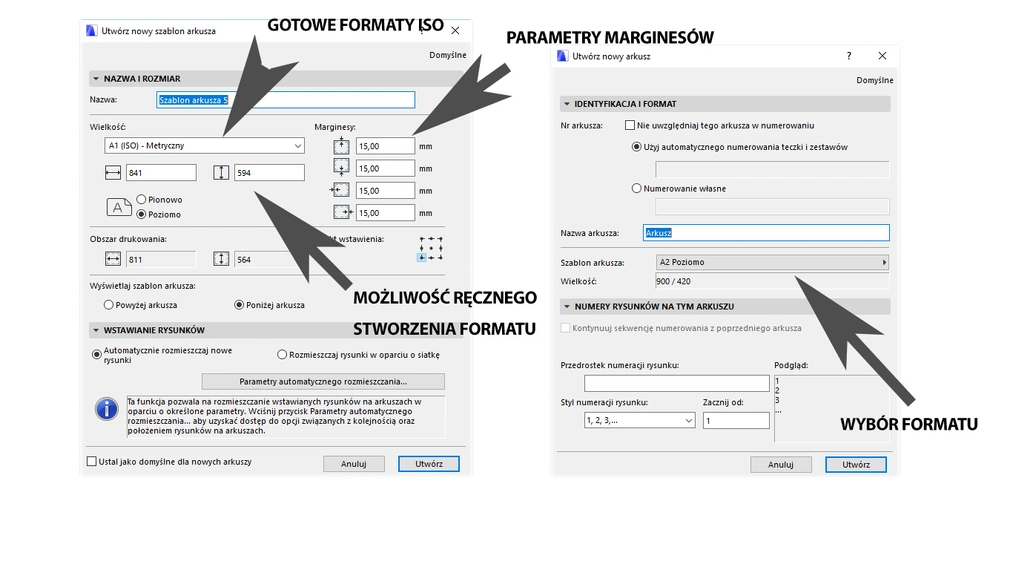 szablon arkusza. Wyskoczy nam okienko w którym możemy stworzyć dowolny format