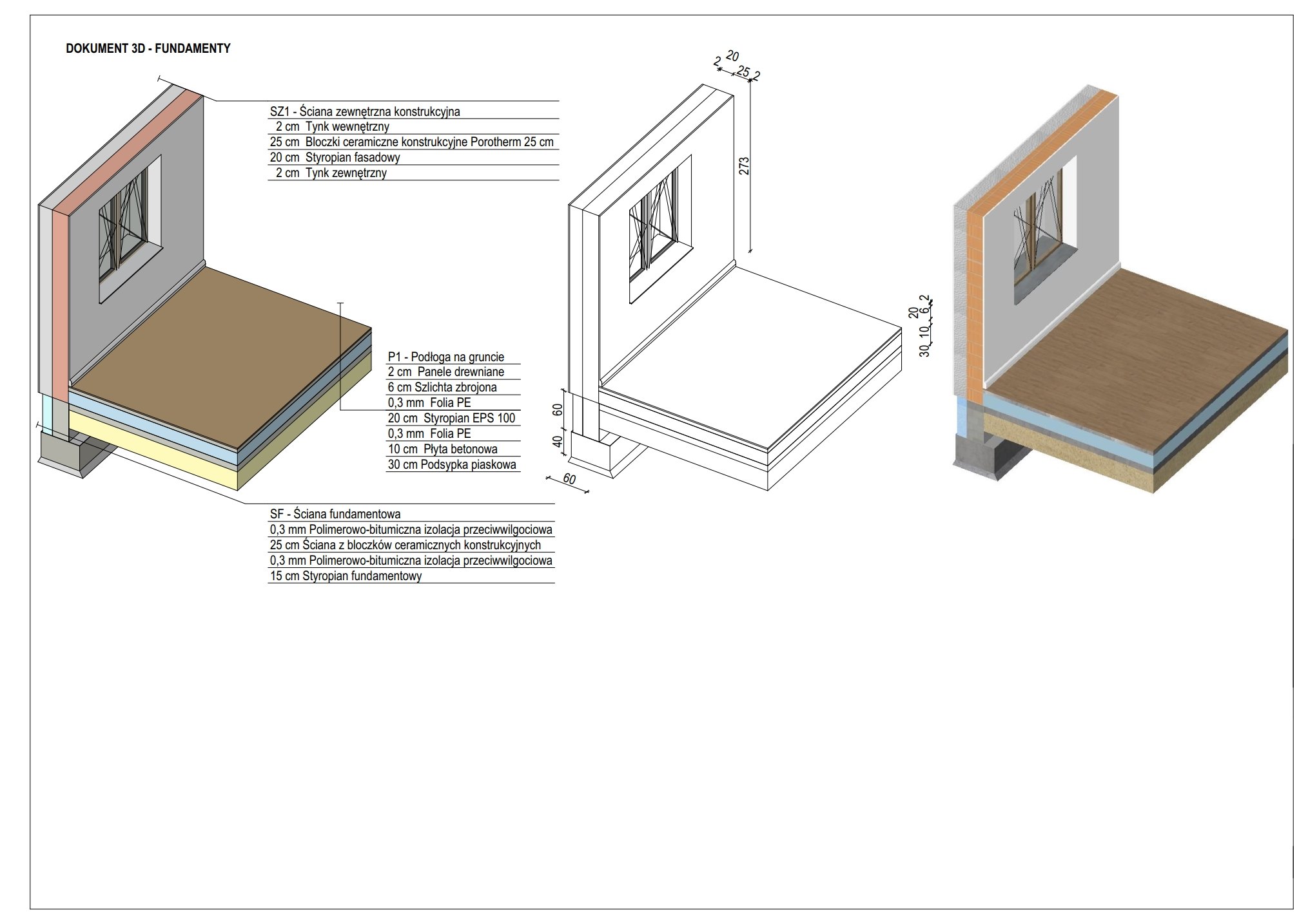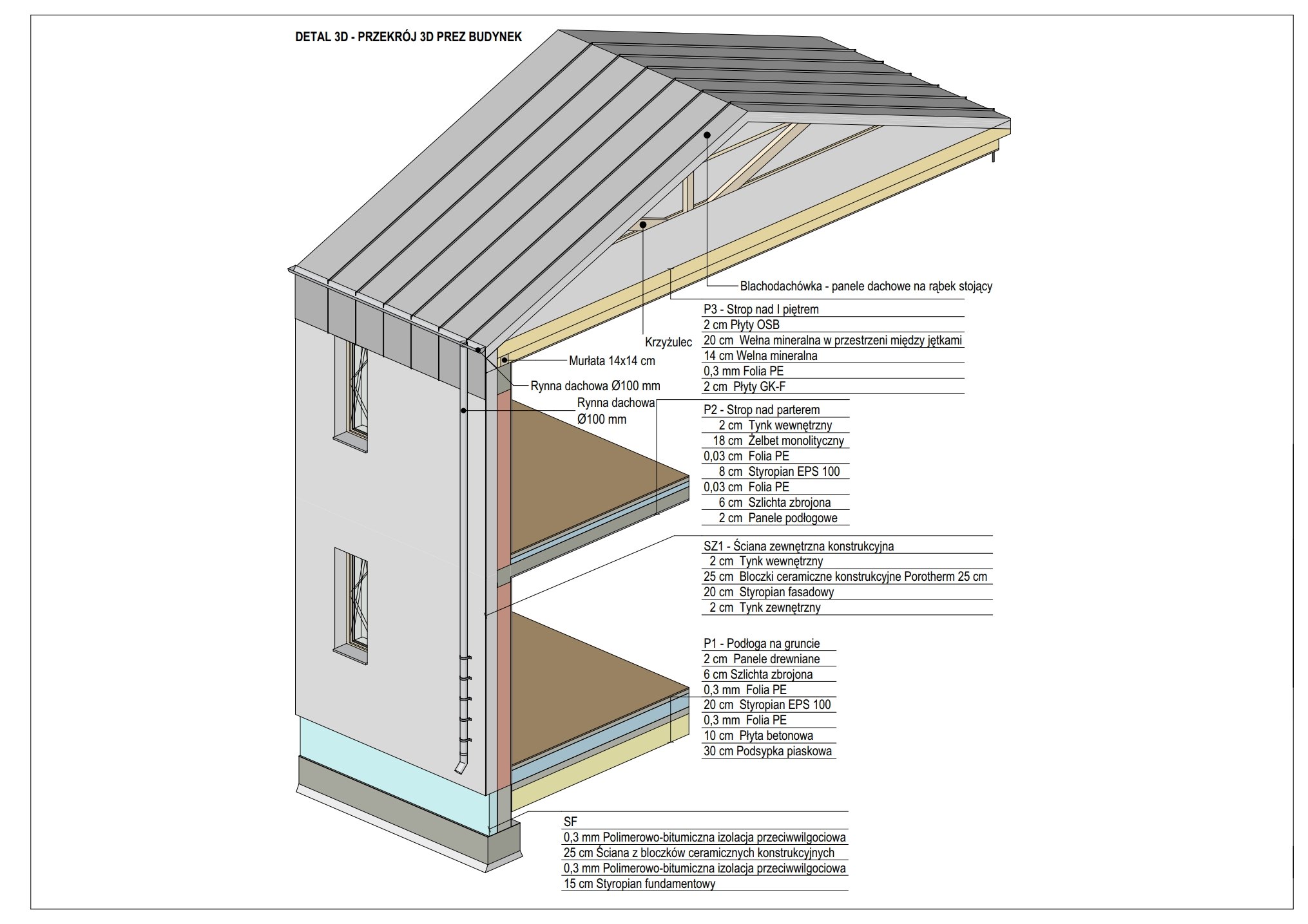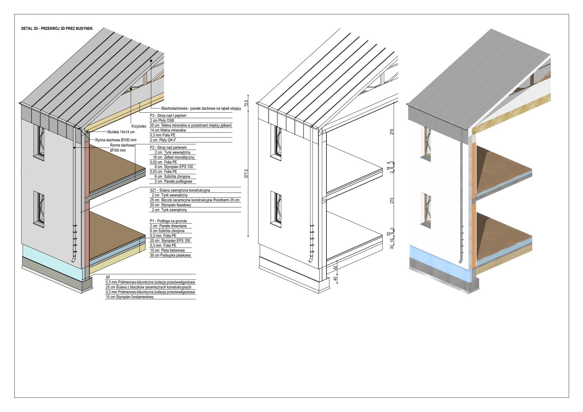 Detale budowlane to nie tylko przekroje 2D. Często wykonawcy potrzebują również widoków aksonometrycznych lub perspektywicznych pokazujących przestrzenny układ elementów konstrukcyjnych.