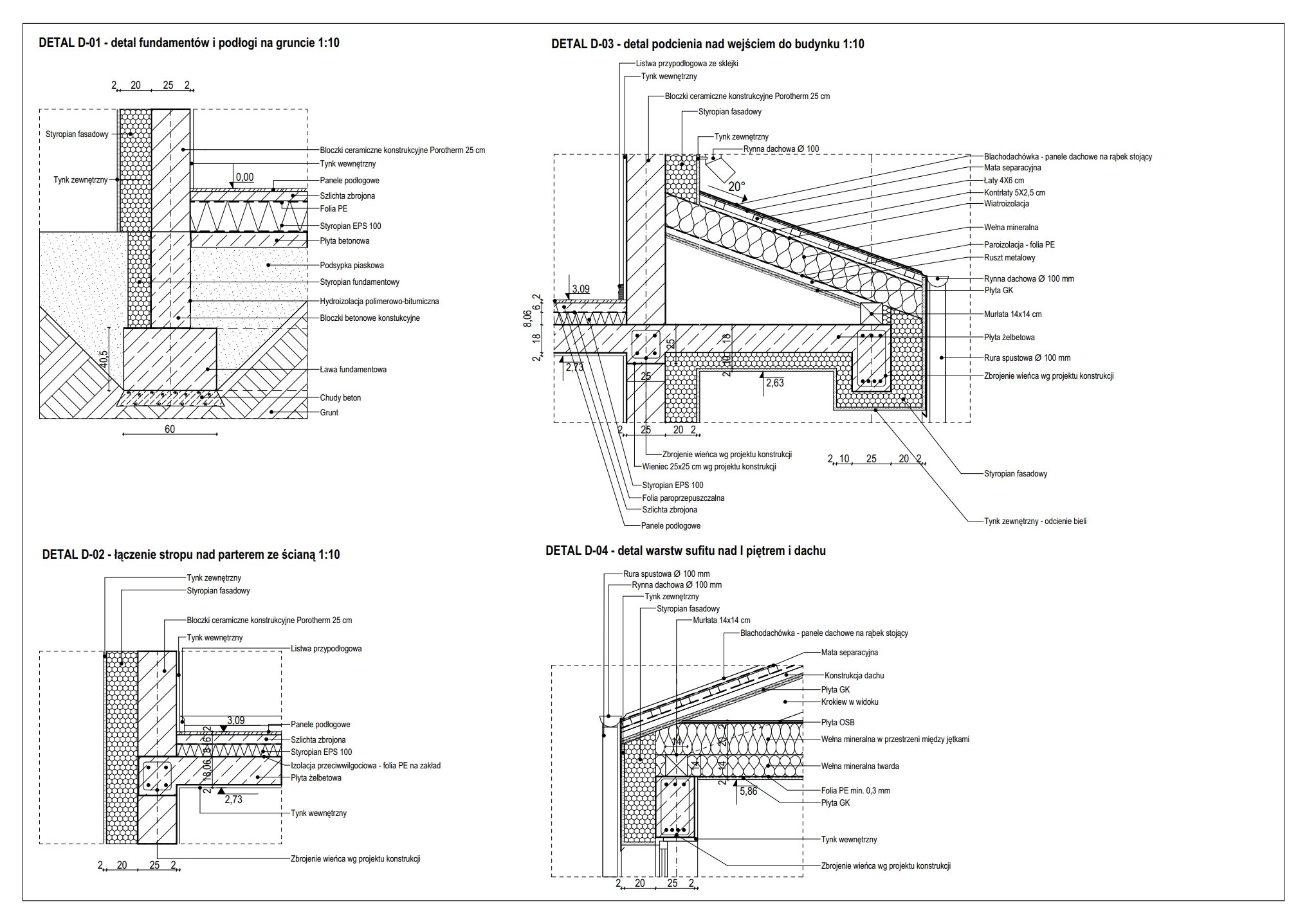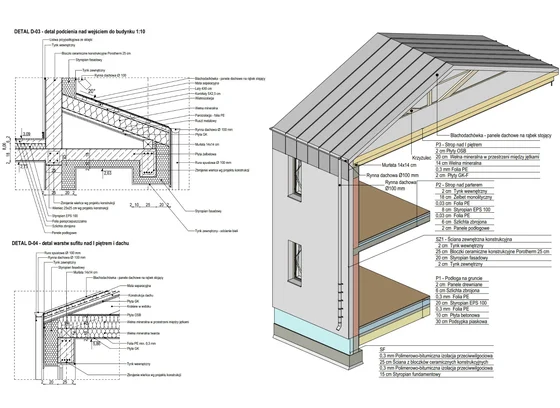 Nie każdy element budynku ma prostą geometrię. Połączenia ścian ze stropami, attyki dachowe, detale fundamentowe - wszystkie te miejsca wymagają specjalnego traktowania, aby na przekroju pokazać rzeczywisty układ warstw materiałów.