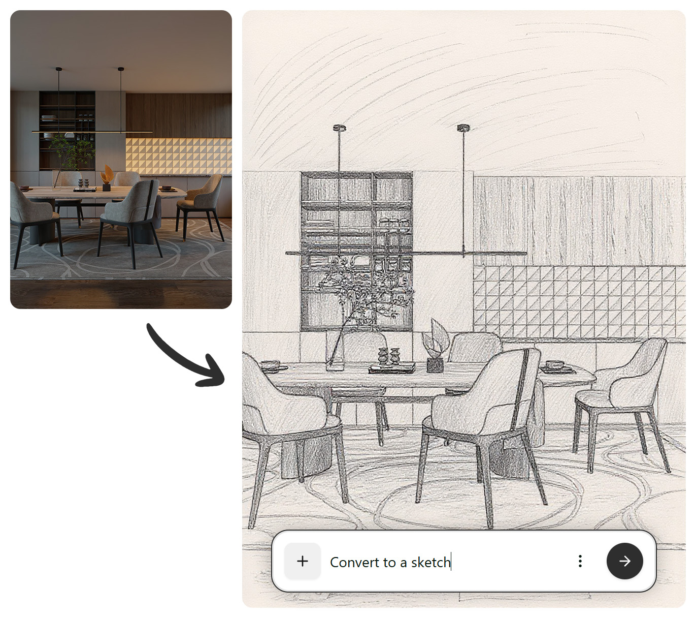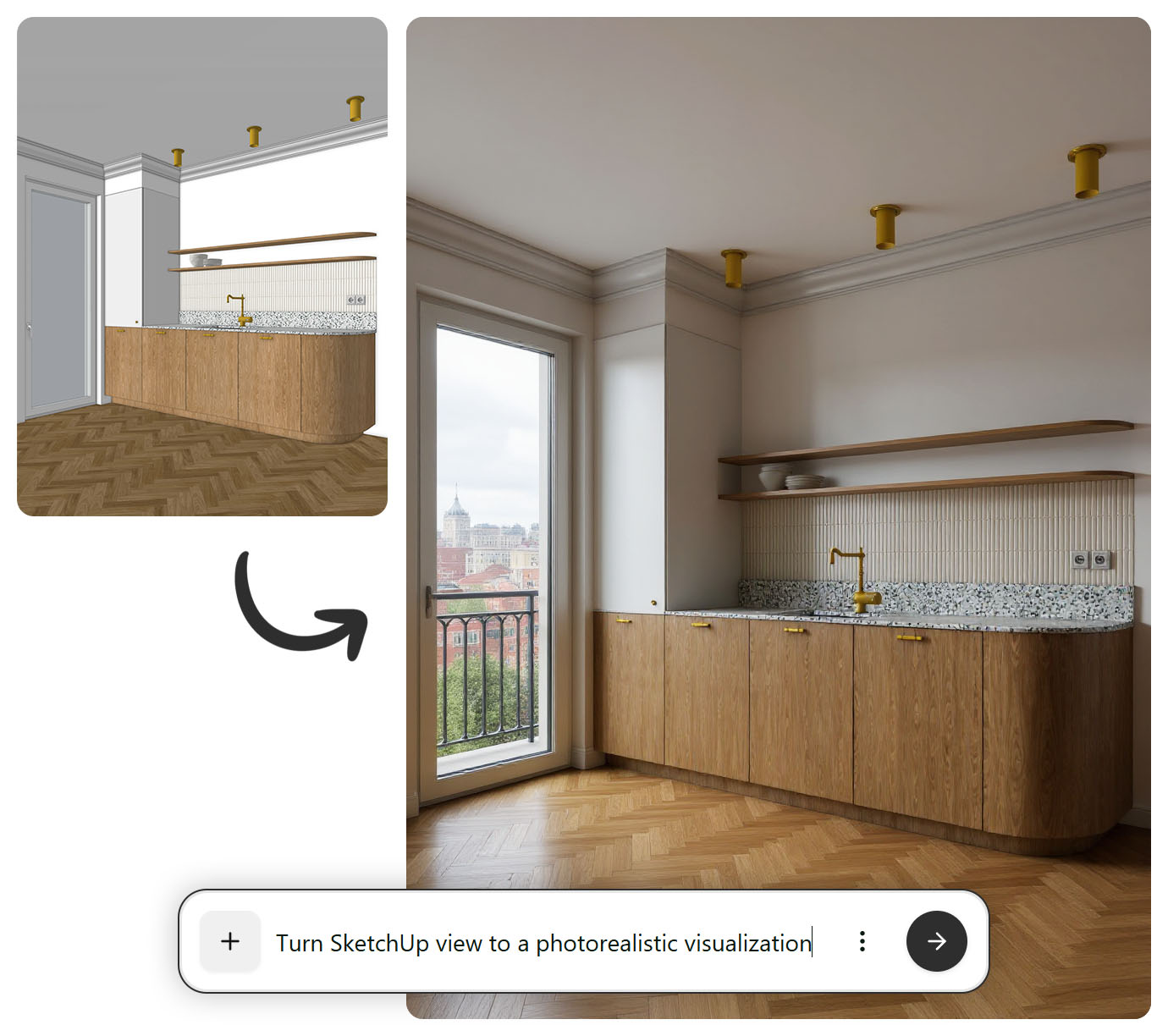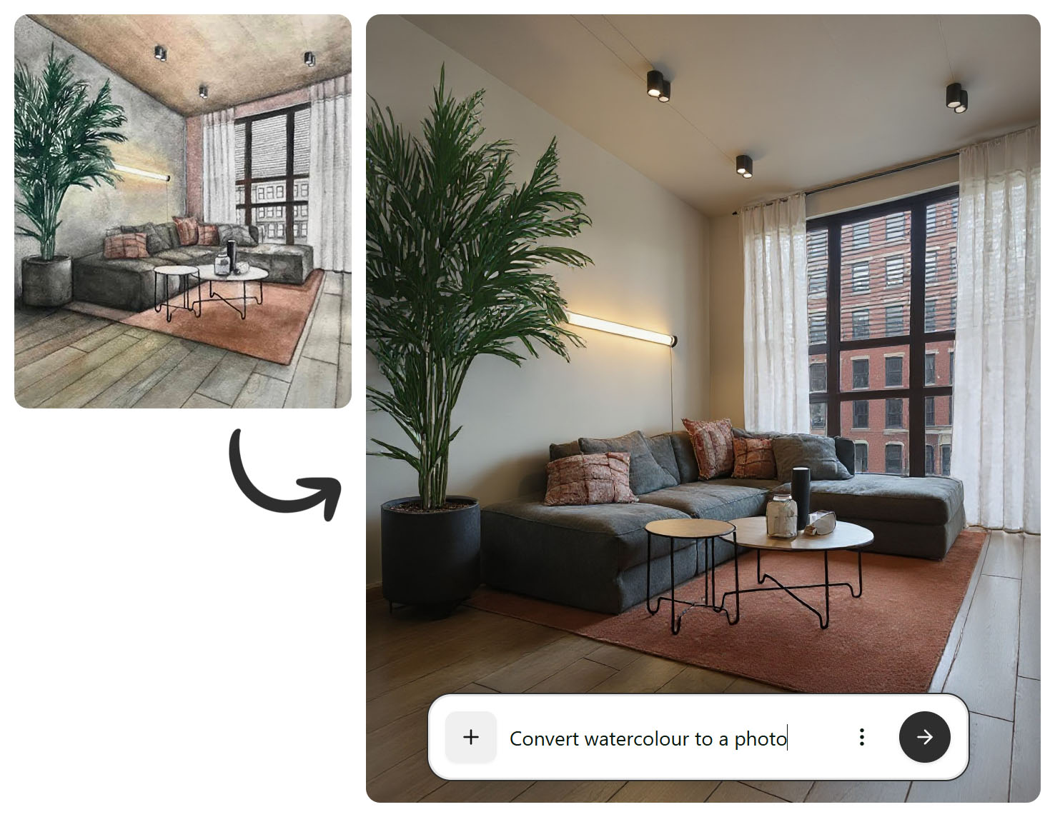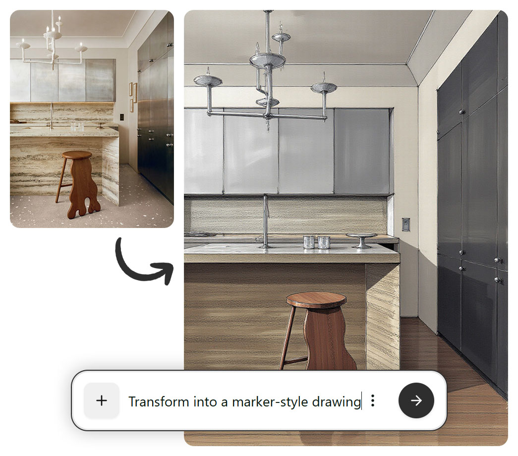Nie zawsze potrzebujesz hiperrealistycznego renderu. Czasem wystarczy szkic koncepcyjny, innym razem nastrojowa wizualizacja, a jeszcze innym: pełny fotorealizm. FLUX Kontext daje pełną kontrolę nad estetyką obrazu. To ogromne wsparcie w procesie twórczym; od teraz masz wybór. Zamiast ograniczać się do jednego stylu, możesz testować różne podejścia i sprawdzać, które najlepiej oddaje charakter projektu.