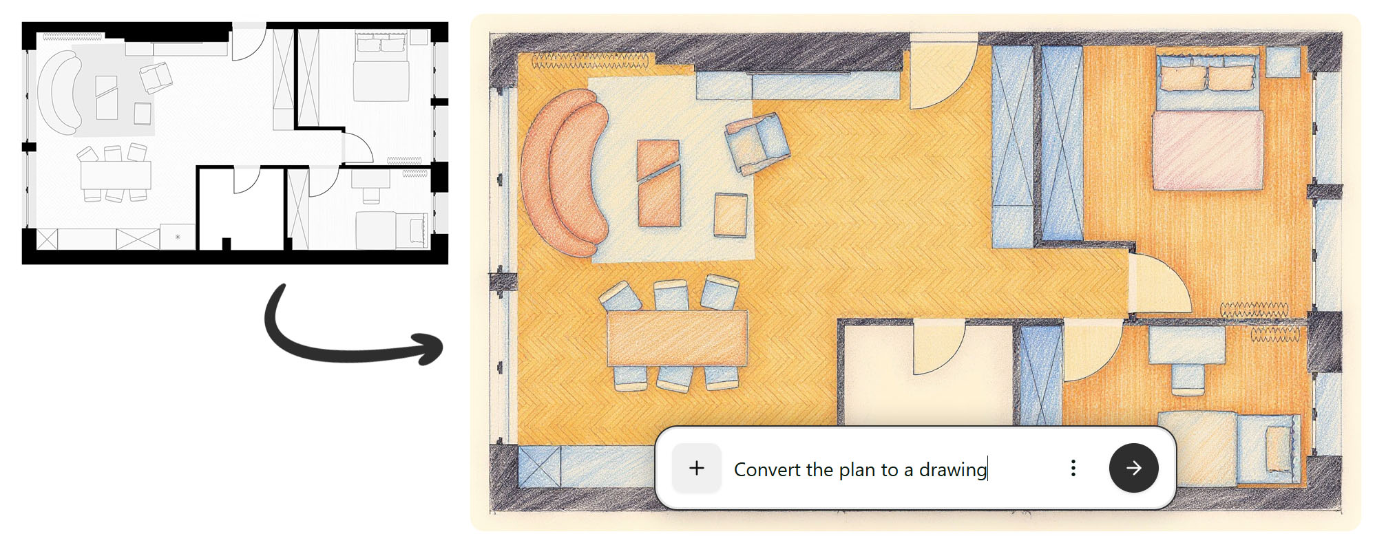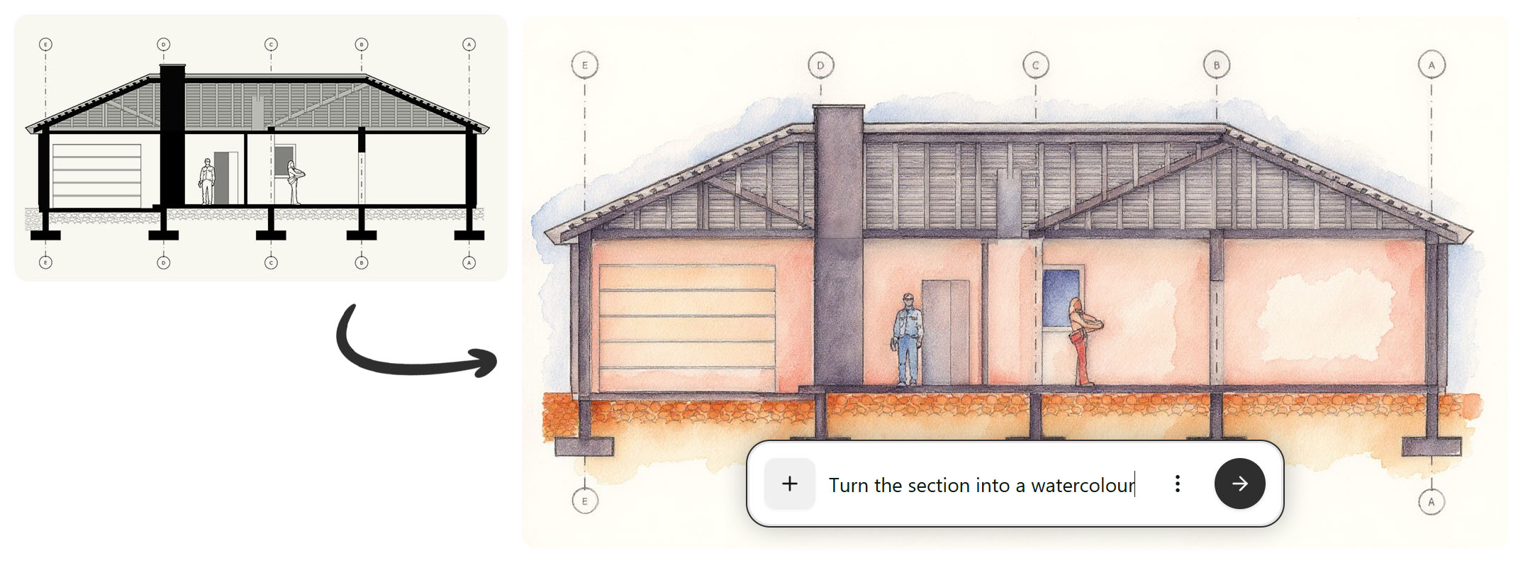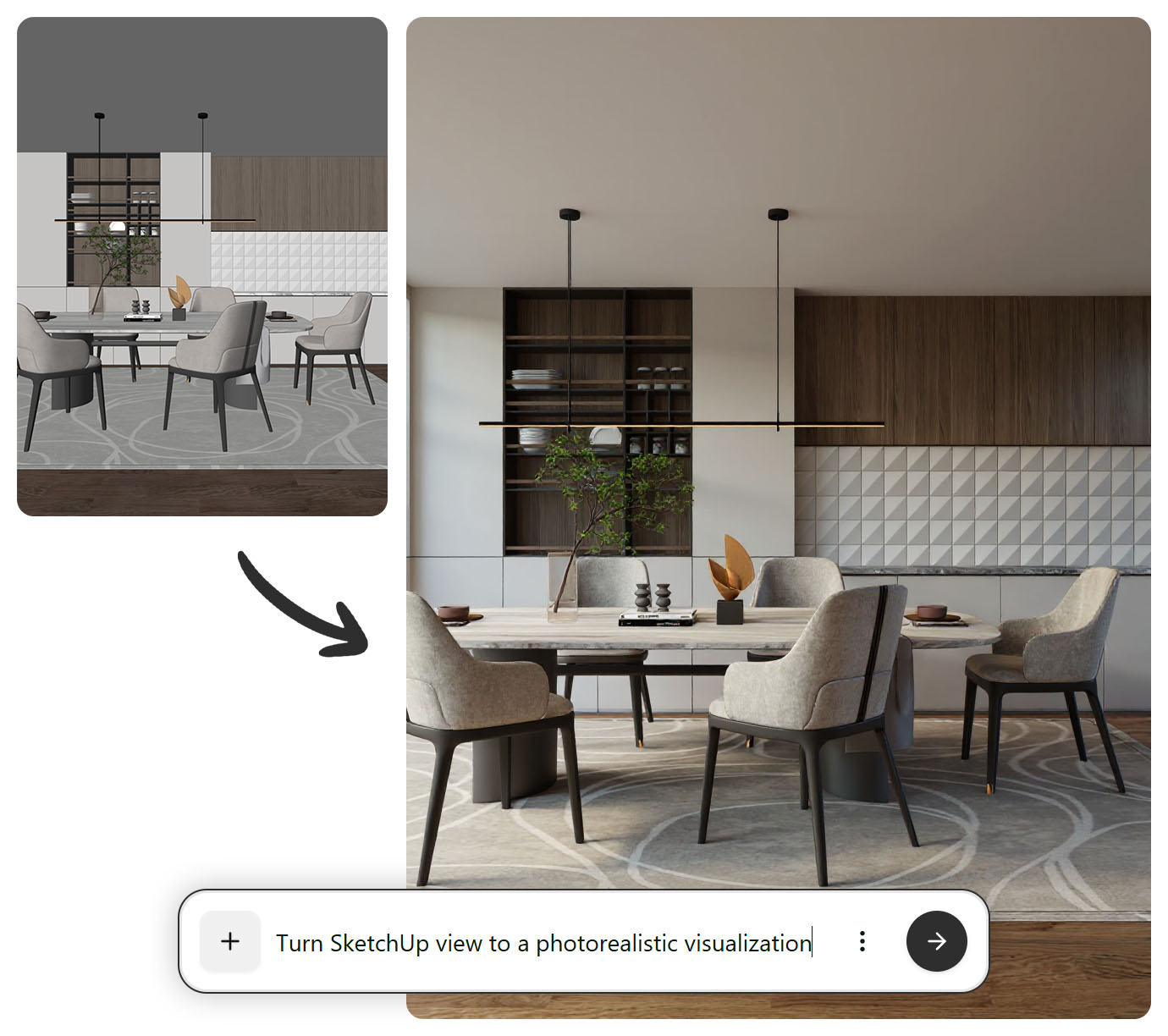 Nie zawsze potrzebujesz hiperrealistycznego renderu. Czasem wystarczy szkic koncepcyjny, innym razem nastrojowa wizualizacja, a jeszcze innym: pełny fotorealizm. FLUX Kontext daje pełną kontrolę nad estetyką obrazu. To ogromne wsparcie w procesie twórczym; od teraz masz wybór. Zamiast ograniczać się do jednego stylu, możesz testować różne podejścia i sprawdzać, które najlepiej oddaje charakter projektu.