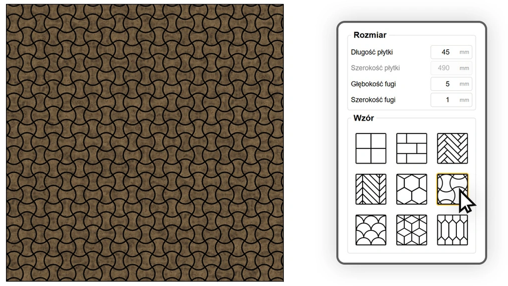 Tryb "Poprzeczne" obróci mapowanie o 90 stopni, co przydaje się przy specyficznych wzorach ceramicznych.