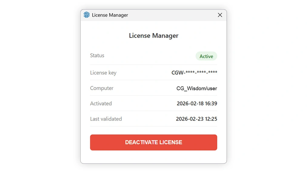 Zastosowaliśmy niezwykle prosty system zarządzania: jeśli kończysz pracę na komputerze w biurze i chcesz dokończyć projekt na laptopie w domu, wystarczy, że jednym kliknięciem dezaktywujesz klucz na pierwszym urządzeniu. Dzięki temu natychmiast zwolnisz licencję i będziesz mógł aktywować ją ponownie na drugim sprzęcie. Zyskujesz pełną mobilność bez konieczności kupowania podwójnego dostępu!